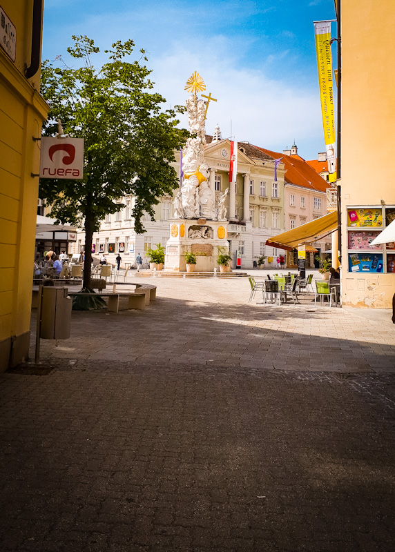 W mieście zachowały sie stare budowle gotycki kościół św. Stefana , ratusz na rynku , XIII wieczny zamek Weikersdorf , Teatr miejski ,dom Mozarta oraz liczne domy i kamienice mieszczańskie.