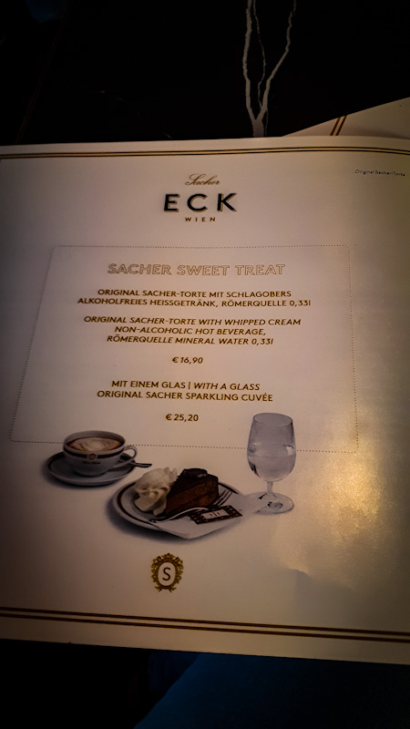 Menu Kawiarnia Sacher , Wiedeń