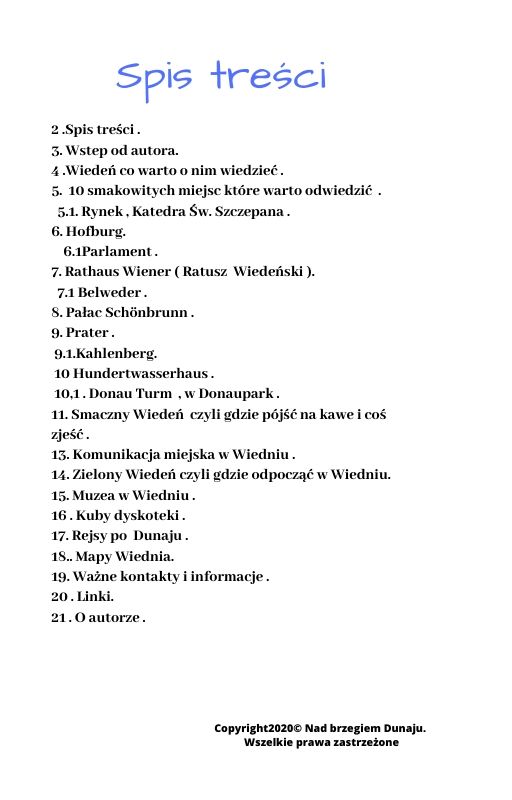 Wybierasz się do Wiednia albo myślisz o tym , to idealny Ebook dla ciebie . Stolica i też największe miasto Austrii Położona w północno-wschodniej części kraju nad rzeką Dunaj .Co warto zobaczyć .Jak poruszać po takim dużym mieście . Do jakich restauracji zajrzeć i gdzie napić się pysznej kawy .W 10 krokach poznasz Wiedeń , co warto zobaczyć gdzie zaglądąć gdzie kupić pyszny Sacher Tort . Gdzie wypocząć , te i wiele innych potrzebnych informacji znajdziesz w tym przewodniku . Który napewno przybliży jaki i pomoże zwiedzić Wiedeń .