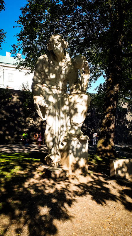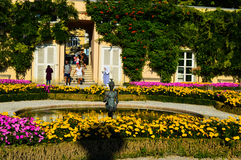 Ogrody przy Palacu Mirabel za mna wzosi sie twierdza Hohensalzburg