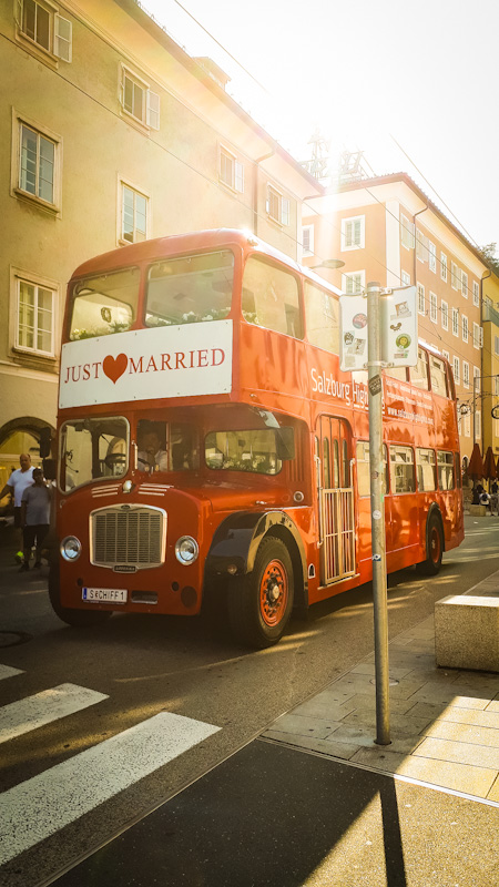 Ja na rynku Czerawony autobus . Salzburg Armata na twierdzy
