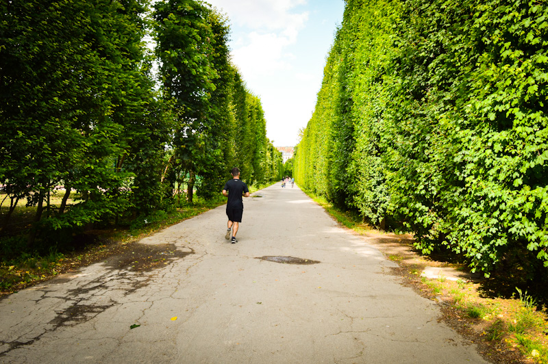 Park ten też ma charakterystycze wysokie żywopłoty które tworza wysokie alejki .